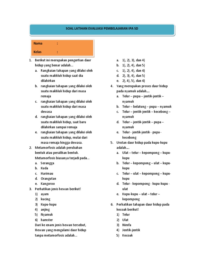 Berikut adalah berbagai contoh soal evaluasi yang dapat digunakan, dikelompokkan berdasarkan jenisnya: