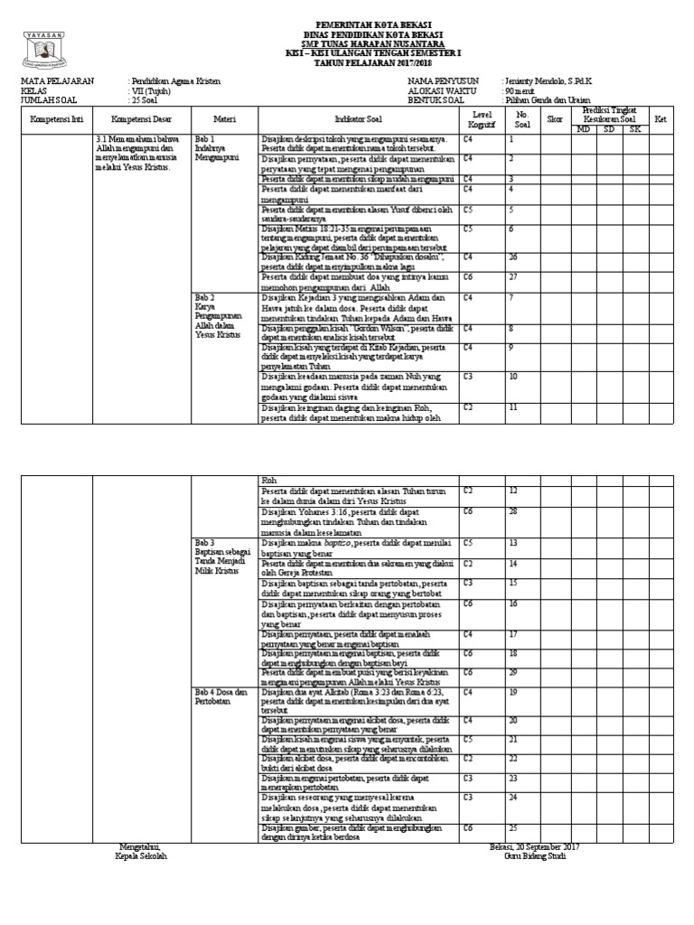 - Contoh Indikator Soal: "Sebutkan tiga pribadi dalam Allah Tritunggal."