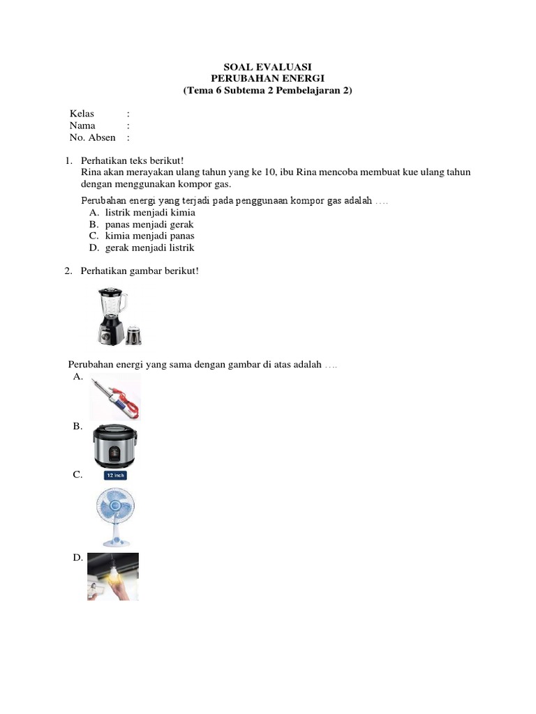 Berikut adalah contoh rangkaian soal evaluasi yang mencakup berbagai jenis dan tingkat kesulitan, yang dapat disesuaikan dengan materi yang diajarkan: